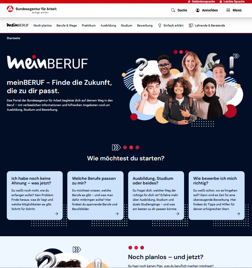 Die Bundesagentur für Arbeit hat für junge Menschen das Portal „meinBeruf“ an den Start gebracht. Hier können sich Jugendliche und junge Erwachsene informieren, welche Jobs zu ihnen passen und welche Schritte dafür nötig sind. Zahlreiche Tools helfen bei der Entscheidung.