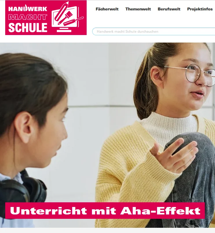 Das Portal „Handwerk macht Schule“ zeigt die Vielfalt des Handwerks auf. Die Unterrichtseinheiten und darin verorteten Lernmaterialien sind sowohl an den zentralen Inhalten der Lehr- und Bildungspläne als auch an den Themen des Handwerks ausgerichtet. Die Inhalte zielen auf den Fachunterricht an allgemeinbildenden Schulen über alle Schulstufen hinweg und gehen über das Thema Berufsorientierung im engeren Sinne hinaus. Es gibt Zugänge nach Themen, Fächern und Berufen.