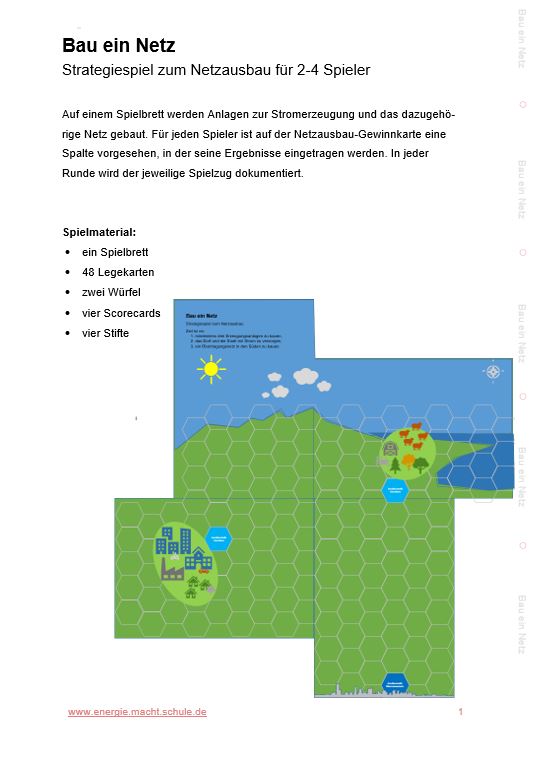 Im Mittelpunkt des Strategiespiels, welches sich für zwei bis vier Spieler eignet, steht das Thema Netzausbau. Aufgabe ist es, mindestens drei Stromerzeugungsanlagen zu bauen, ein Dorf und eine Stadt mit Strom zu versorgen und eine Übertragungsnetztrasse zu bauen.