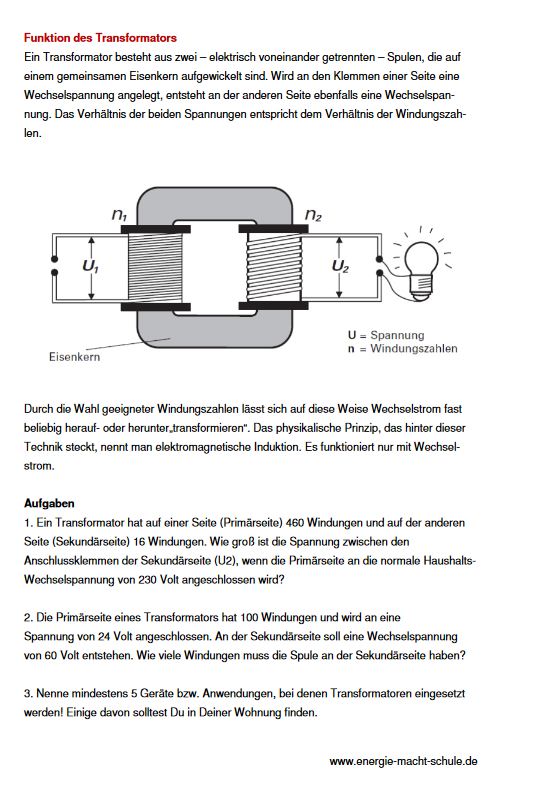Arbeitsblatt: Wie funktioniert ein Transformator?