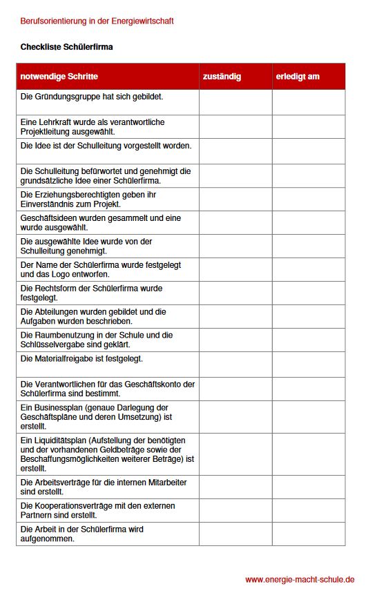 Start·Themen·Ökonomie·Berufsorientierung· Checkliste: Gründung Schülerfirma