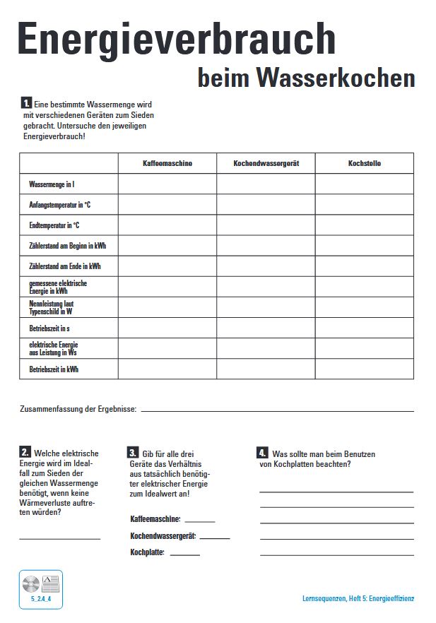 Mithilfe des Arbeitsblattes untersuchen die Schülerinnen und Schüler den Energieverbrauch verschiedener Haushaltsgeräte für das Erwärmen von Wasser. Hinweise zur Durchführung können dem Lösungsblatt entnommen werden. Das Arbeitsblatt eignet sich insbesondere für den Einsatz in der Sekundarstufe I.