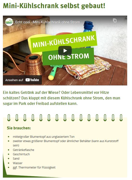 Wie lassen sich Lebensmittel auch ohne Strom bzw. Kühlschrank kühl halten? Mit dem Experiment vom Haus der Kleinen Forscher kann man es erkunden. Dieses eignet sich vor allem für den Sachkundeunterricht in der Grundschule.