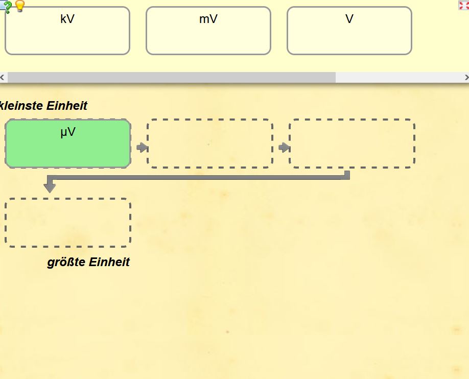Welche Maßeinheiten gibt es für Spannung, Stromstärke und Frequenz. Welches ist die kleinste, welches die größte Einheit? Mit dieser Learning App können Schülerinnen und Schüler ihr Wissen dazu überprüfen und festigen. Dazu sind die angegebenen Maßeinheiten per Drag & Drop in die richtige Reihenfolge zu bringen. Einsatzmöglichkeiten bietet die App zur kurzweiligen und spielerischen Wissensfestigung vor allem in den naturwissenschaftlichen und technischen Fächern der Sekundarstufe I. Sie sollte dabei jedoch immer in einen methodisch-didaktischen Kontext eingebunden werden.