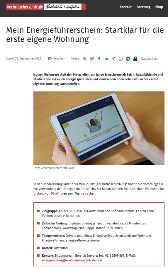 Auf Wunsch kann bei der Verbraucherzentrale NRW dazu auch ein 90-minütiger Workshop gebucht werden.