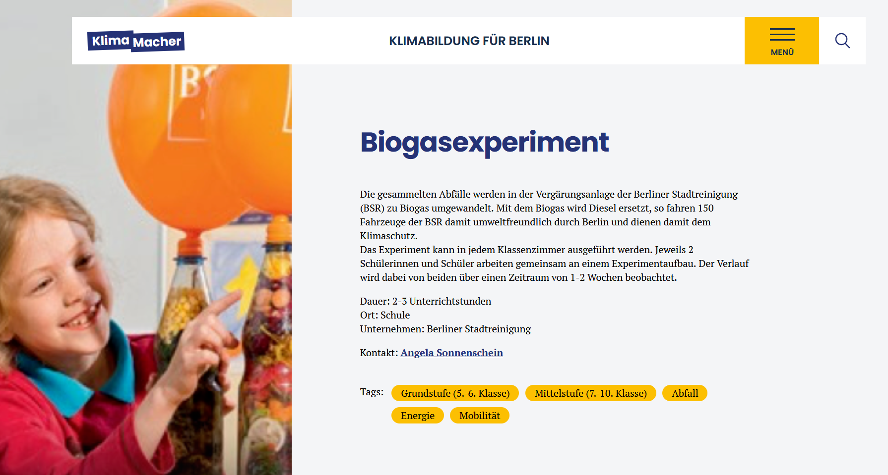 Das Experiment zum Thema Biogas der Berliner Stadtreinigung (BSR) kann in jedem Klassenzimmer ausgeführt werden.