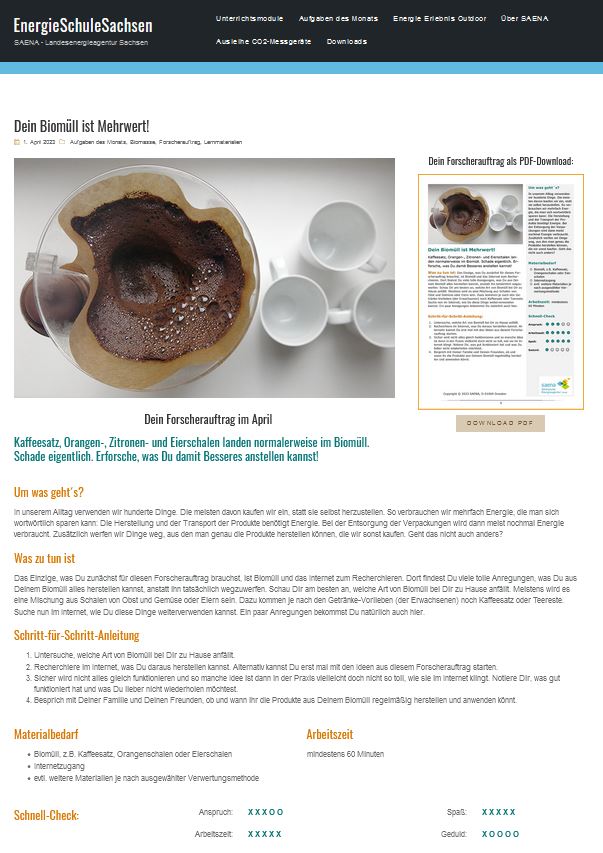 Was man mit Biomüll alles herstellen kann, anstatt ihn tatsächlich wegzuwerfen können Lernende in diesem Experiment der Landesenergieagentur Sachsen erkunden.