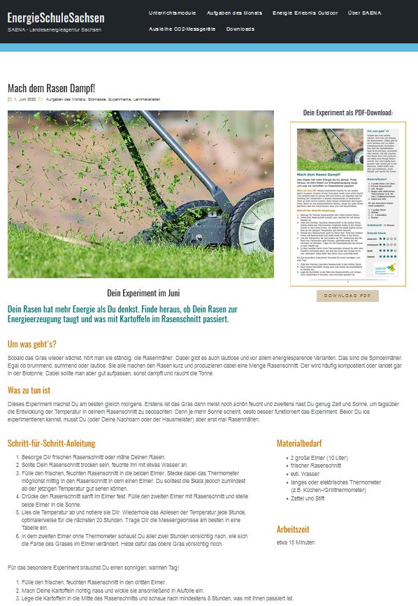 Mithilfe dieses Experiments der Landesenergieagentur Sachsen können Schülerinnen und Schüler herausfinden, ob Rasenschnitt zur Energieerzeugung taugt.