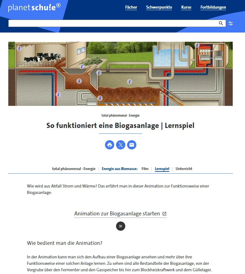 Lernspiel: So funktioniert eine Biogasanlage (Planet Schule)