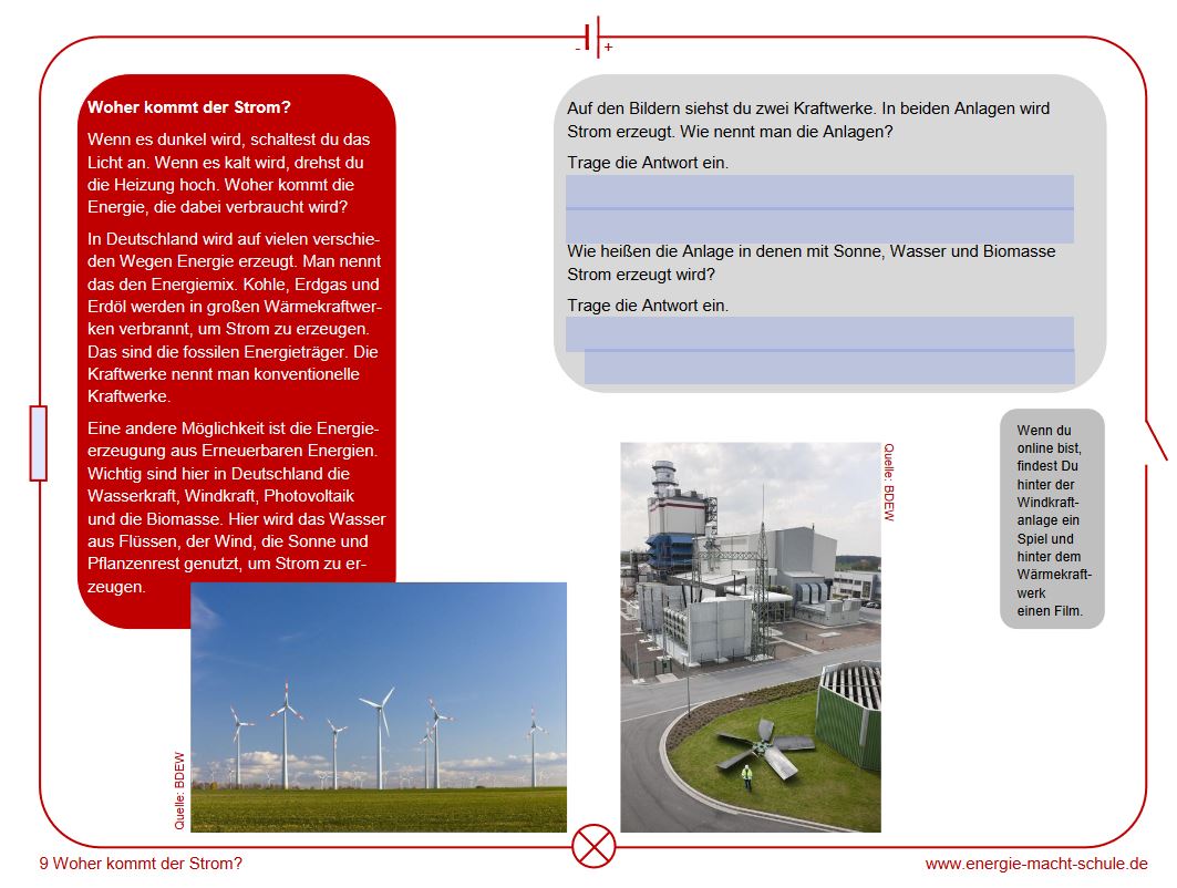 Interaktives Arbeitsblatt: Woher kommt der Strom?