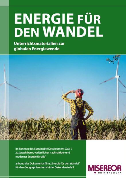 Das Unterrichtsmaterial „Energie für den Wandel“ ergänzt den gleichnamigen Film. In sechs Bausteinen erarbeiten die Schülerinnen und Schüler Themen wie „Nachhaltige Energienutzung“ und „Saubere Energie für alle“, um praxisnahe Lösungen für die Herausforderungen der globalen Energiewende zu finden.