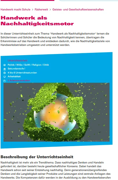 Unterrichtseinheit: Handwerk als Nachhaltigkeitsmotor