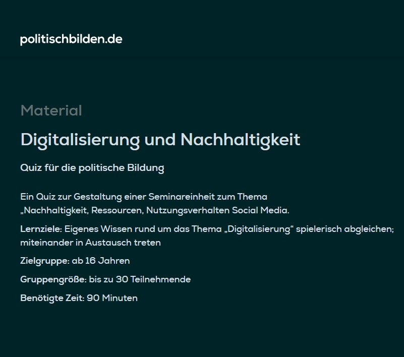 Ein Quiz zur Gestaltung einer Seminareinheit zum Thema „Nachhaltigkeit, Ressourcen, Nutzungsverhalten Social Media.