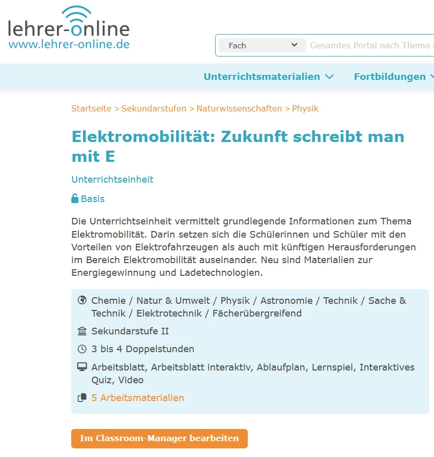 Start·Themen·Elektromobilität· Unterrichtsmaterial