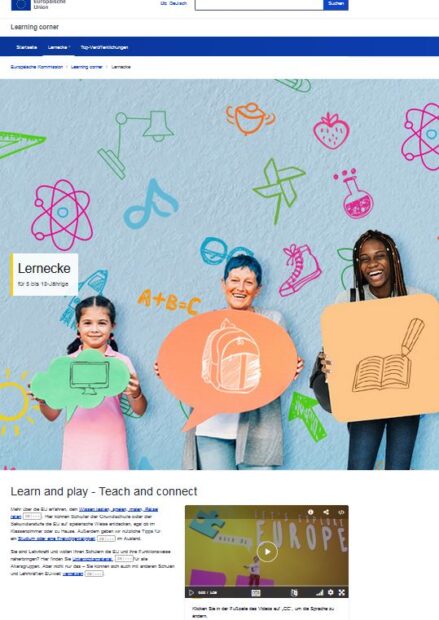 Website speziell für Grundschulkinder und die Sekundarstufe I mit Spielen und einen Bereich für Lehrkräfte mit einer Sammlung von Arbeitsmaterialien über Europa.