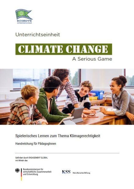 ECOMOVE hat eine Unterrichtseinheit „Spielerisches Lernen/Serious Games“ zum Themenkomplex „Internationale Gerechtigkeit und Klimawandel“ entwickelt.