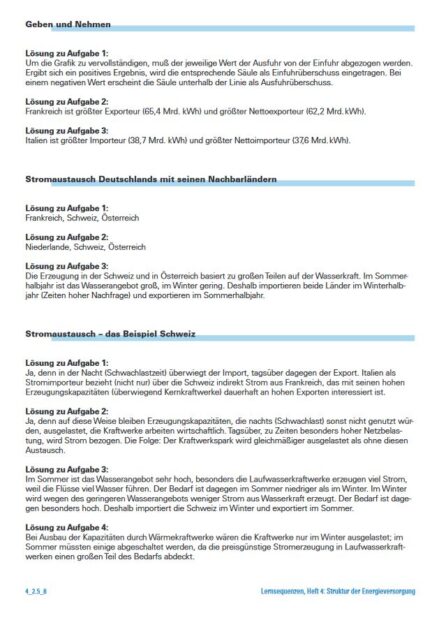 Arbeitsblatt: Stromaustausch Deutschlands mit seinen Nachbarländern