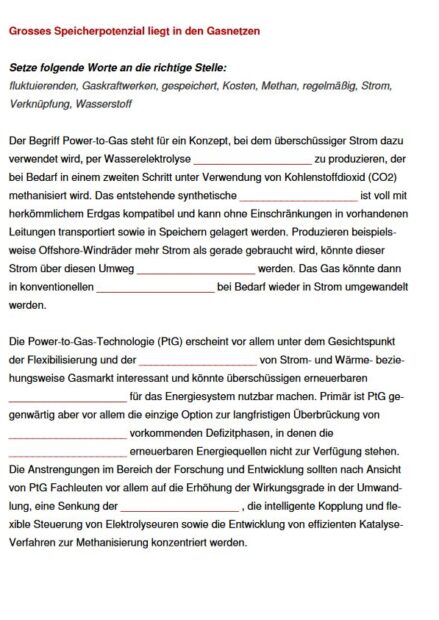 Mithilfe des Arbeitsblattes lernen die Schülerinnen und Schüler der Sekundarstufe I durch Ausfüllen eines Lückentextes, welche Formen der Energiespeicherung und Energieumwandlung Anwendung finden.