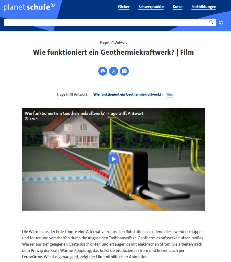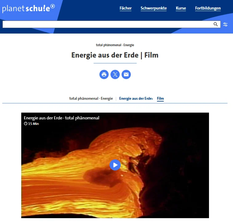 Im Innern der Erde kocht und brodelt es. Dort schlummert ein gewaltiges Energiepotenzial, das es anzuzapfen gilt: Erdwärme. Ein Video von Planet Schule für die Sekundarstufe 1.