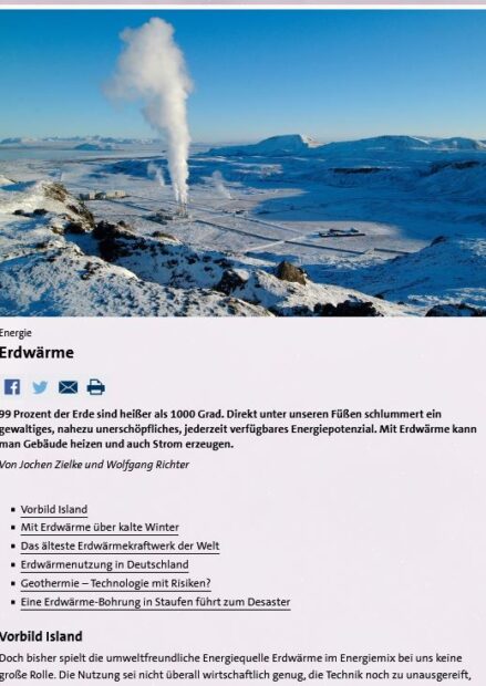 Auf den Internetseiten der Fernsehsendung „Planet Wissen“ von WDR, SWR und BR steht umfangreiches Material zur Erdwärme zur Verfügung.