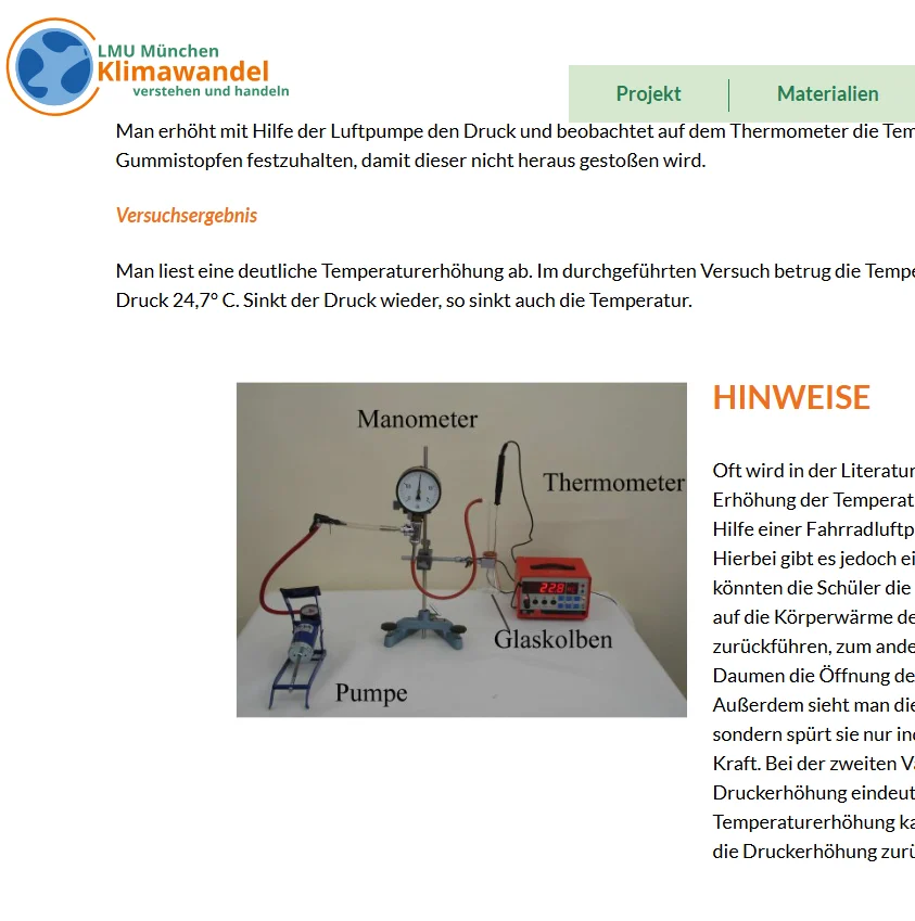 Mit Mano- und Thermometer, Glaskolben und Pumpe: Die Ludwig-Maximilians-Universität in München (LMU) hat einige Versuche entwickelt, um die Funktion von Wärmepumpen zu testen.