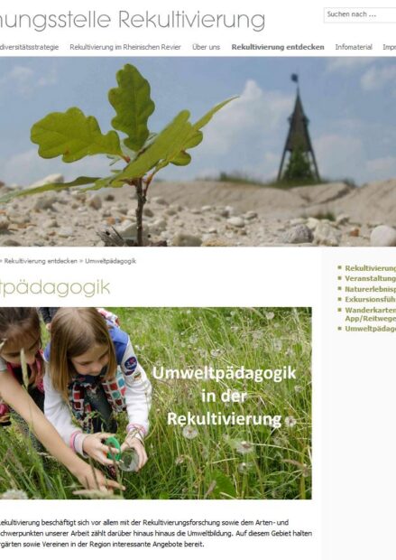 Internetseite, welche sich dem Thema der Rekultivierung von Braunkohletagebauen im Rheinischen Revier widmet. Unter der Rubrik „Infomaterial“ steht unter anderem eine Auswahl an Unterrichtsmaterialien zur Umweltbildung bereit, welche kostenlos heruntergeladen werden können.