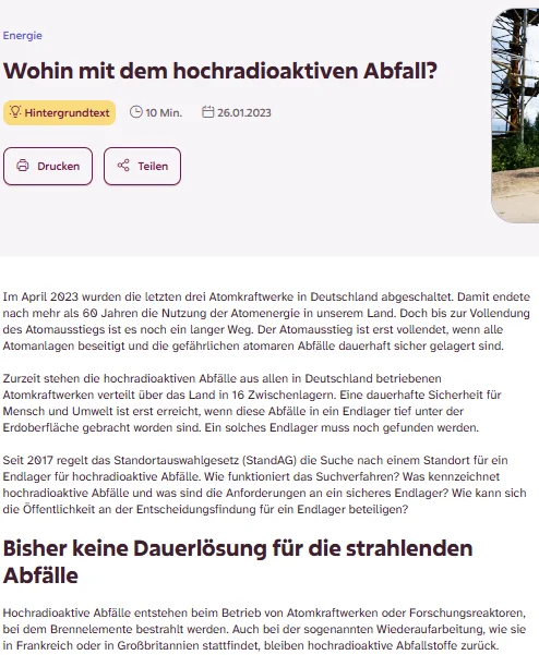 Linktipp: Die Endlagerung hochradioaktiver Abfälle