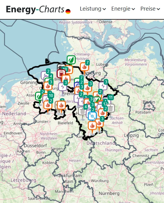 Welches Kraftwerk befindet sich in deiner Nähe? Was ist der Energieträger? Klicke dich durch die interaktive Karte von Energy-Charts, einem Angebot des Fraunhofer Instituts, und finde es heraus.