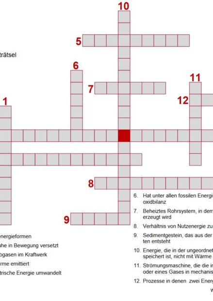Das Kreuzworträtsel eignet sich vor allem zur kurzweiligen Festigung oder Wiederholung bereits bekannter und erlernter Informationen rund um das Thema Wärmekraftwerk.