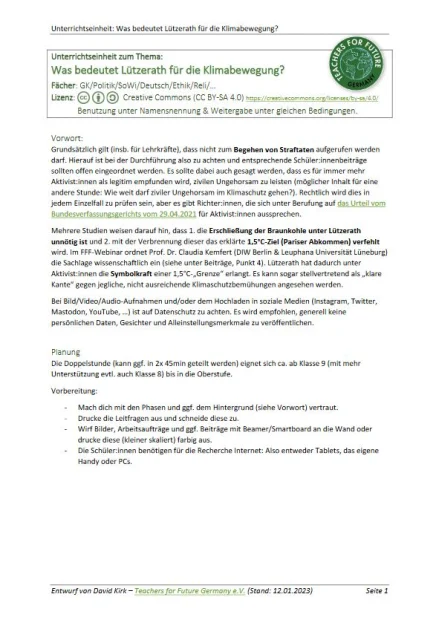 Unterrichtsmaterial: Was bedeutet Lützerath für die Klimabewegung?
