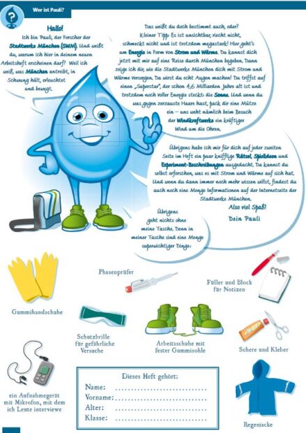 Das Arbeitsheft der Stadtwerke München für die 3. Klasse informiert grundlegend über die verschiedenen Energiequellen und Formen von Energie. Spiele, Experimente und Aufgaben sorgen dabei für ein handlungsorientiertes Lernen und bieten Spaß und Abwechslung.