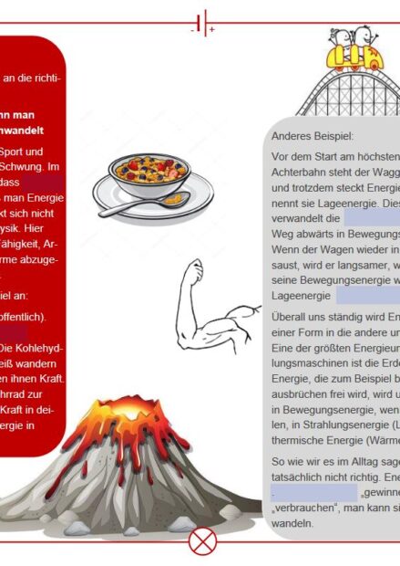 Das Arbeitsblatt thematisiert die Energieumwandlung. Die Schüler füllen einen Lückentext aus, in dem die Umwandlung von Energie anhand von Beispielen anschaulich erläutert wird. Der alltäglichen Verwendung des Begriffs „Energie“ wird eine physikalische Definition gegenübergestellt.