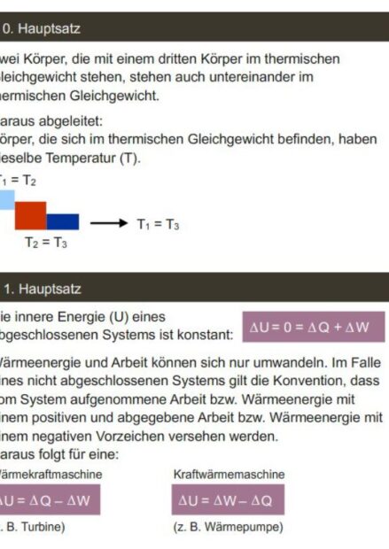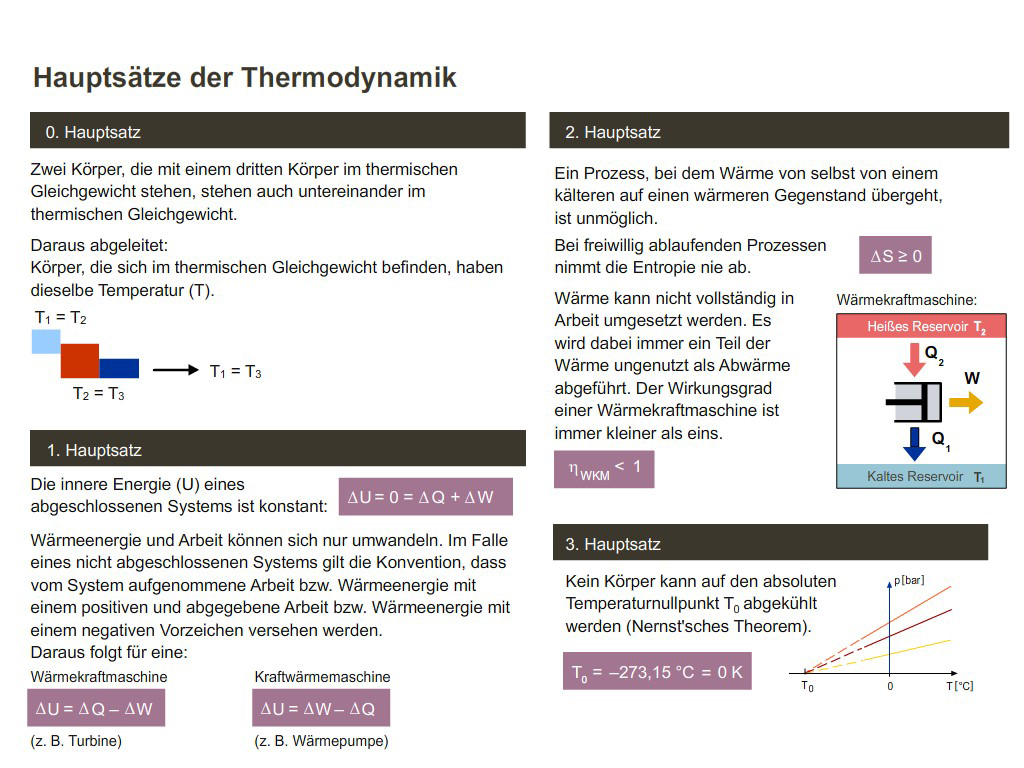 Schaubild: Hauptsätze der Thermodynamik
