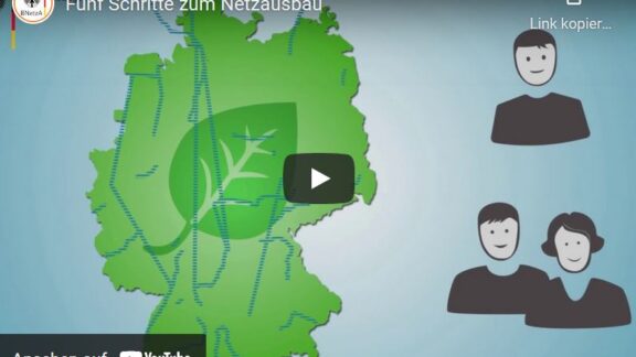 Der Animationsfilm der Bundesnetzagentur erklärt die fünf Schritte zum Netzausbau und zeigt, wie sich Bürgerinnen und Bürger beteiligen können.