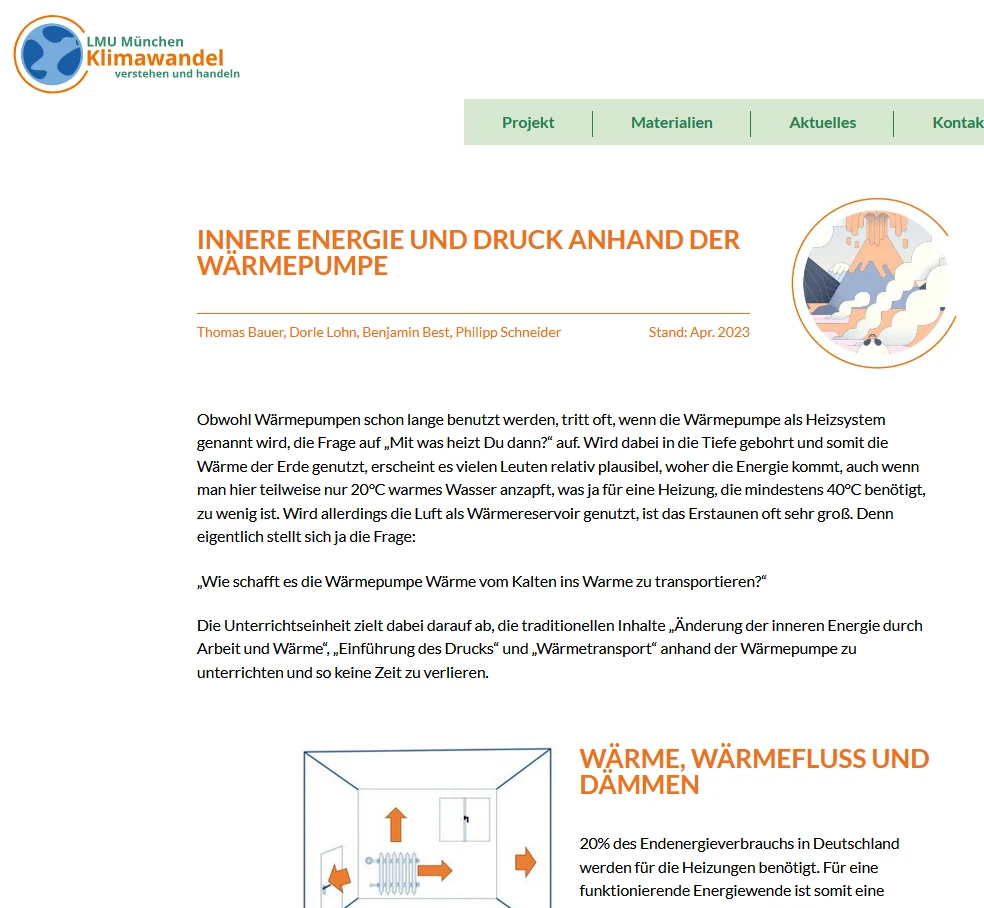 Wie kann eine Wärmepumpe aus kalter Winterluft wohlige Wärme erzeugen? Diese Unterrichtseinheit verbindet die physikalischen Grundlagen von Druck, innerer Energie und Wärmetransport mit der praktischen Funktionsweise der Wärmepumpentechnologie – entwickelt von der Ludwig-Maximilians-Universität München (LMU) für den Physikunterricht.