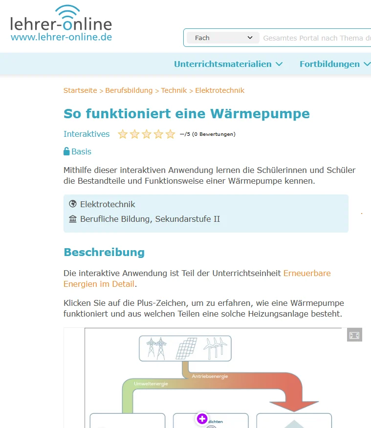 Mithilfe dieser interaktiven Anwendung lernen die Schülerinnen und Schüler die Bestandteile und Funktionsweise einer Wärmepumpe kennen.