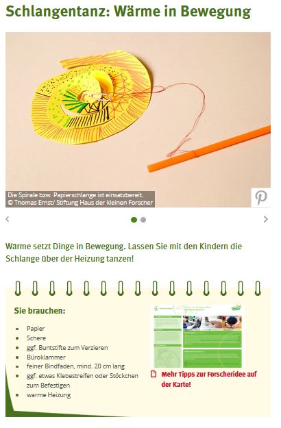 Bei diesem Experiment basteln die Grundschülerinnen und Grundschüler eine Papierschlange, die anschließend über eine Wärmequelle, zum Beispiel eine warme Heizung, gehalten wird.