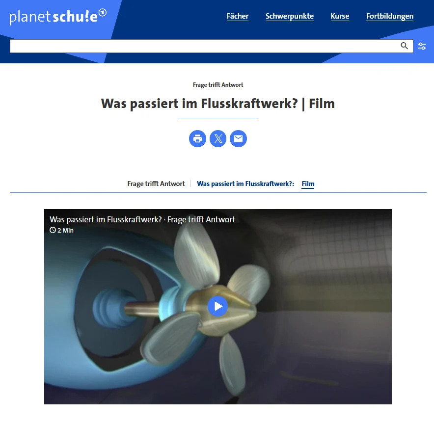 In der Strömung von Bächen und Flüssen steckt viel Energie – die ein Flusskraftwerk anzapfen kann. Haushohe Turbinen liefern Strom für hunderttausende Haushalte. Wie das genau funktioniert, erklärt dieses Video des SWR.