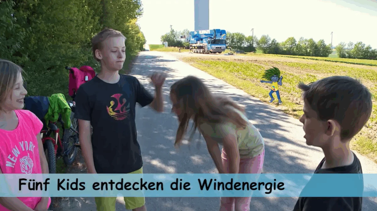 Anna, Tobias, Patricia, Moritz und Carmen besuchen einen Windpark und erfahren, wie aus Wind sauberer Strom erzeugt wird. Dafür klettern sie sogar im Turm eines Windrades bis ganz hinauf zur Gondel.